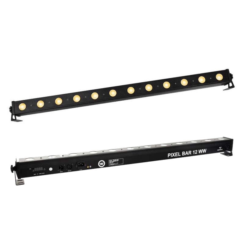 LIGHT4ME PIXEL BAR 12 WW LED to wyspecjalizowana listwa ledowa. Led bar wyposażony został w 12 mocnych, 3-watowych diod LED firmy Cree, emitujących bardzo ciepłe, białe światło (Warm White) o temperaturze barwowej zbliżonej do 2200 Kelwinów. Urządzenie z powodzeniem może być stosowane w klubach, hotelach, restauracjach i pubach, gdzie chcemy uzyskać wrażenie relaksu, ciepła i spokoju, a także podczas dekoracji światłem sali weselnych czy różnego rodzaju imprez okolicznościowych. Dzięki wbudowanej funkcji stroboskopu, możliwości sterowania pojedynczymi diodami oraz niewielkiej wadze, pixelbar świetnie sprawdza się także w dyskotekach oraz mobilnej pracy DJ-ów.